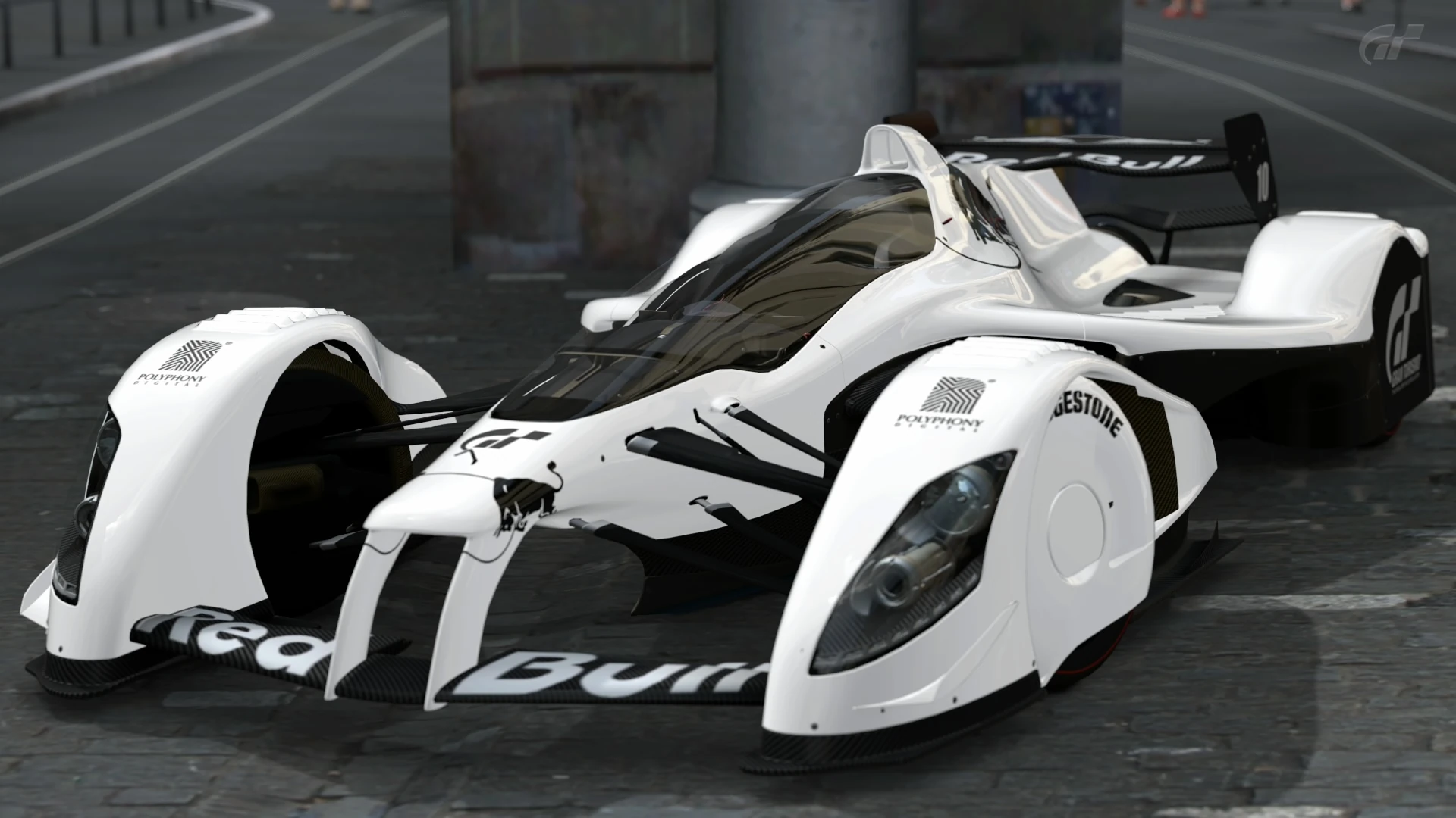 - In the QA build of GT5, the car originally lacked Red Bull brandings, being referred to as the Polyphony Digital X1 in that version.[4]