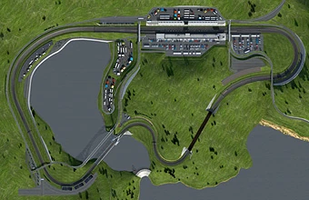 After being absent in Gran Turismo 3: A-Spec, High Speed Ring got a major overhaul for Gran Turismo 4; the pit entry was extended to the entry of the final corner when going forwards, and the forest look was ousted for a plain with a lake on the inside of the track. There is a new bridge after the second turn, and there is a way to manually drive into the pit stop without actually pitting in.