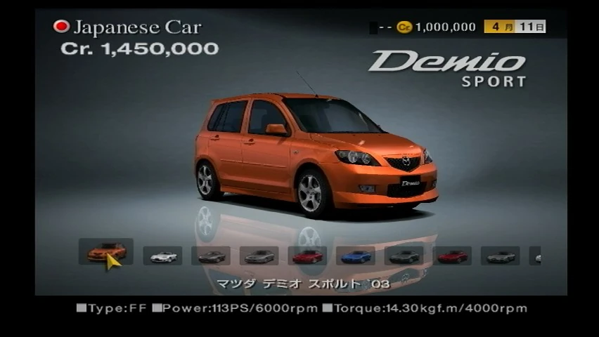 | Gran Turismo 4 | Mazda New Car Dealership | 14,500 | Available from the start in Arcade Mode |