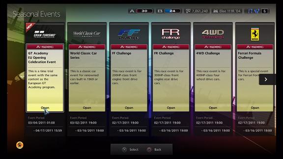 In GT5, single race Seasonal Events consisted of Special Races and Gran Turismo Expert Challenges (formerly Bonus Races).