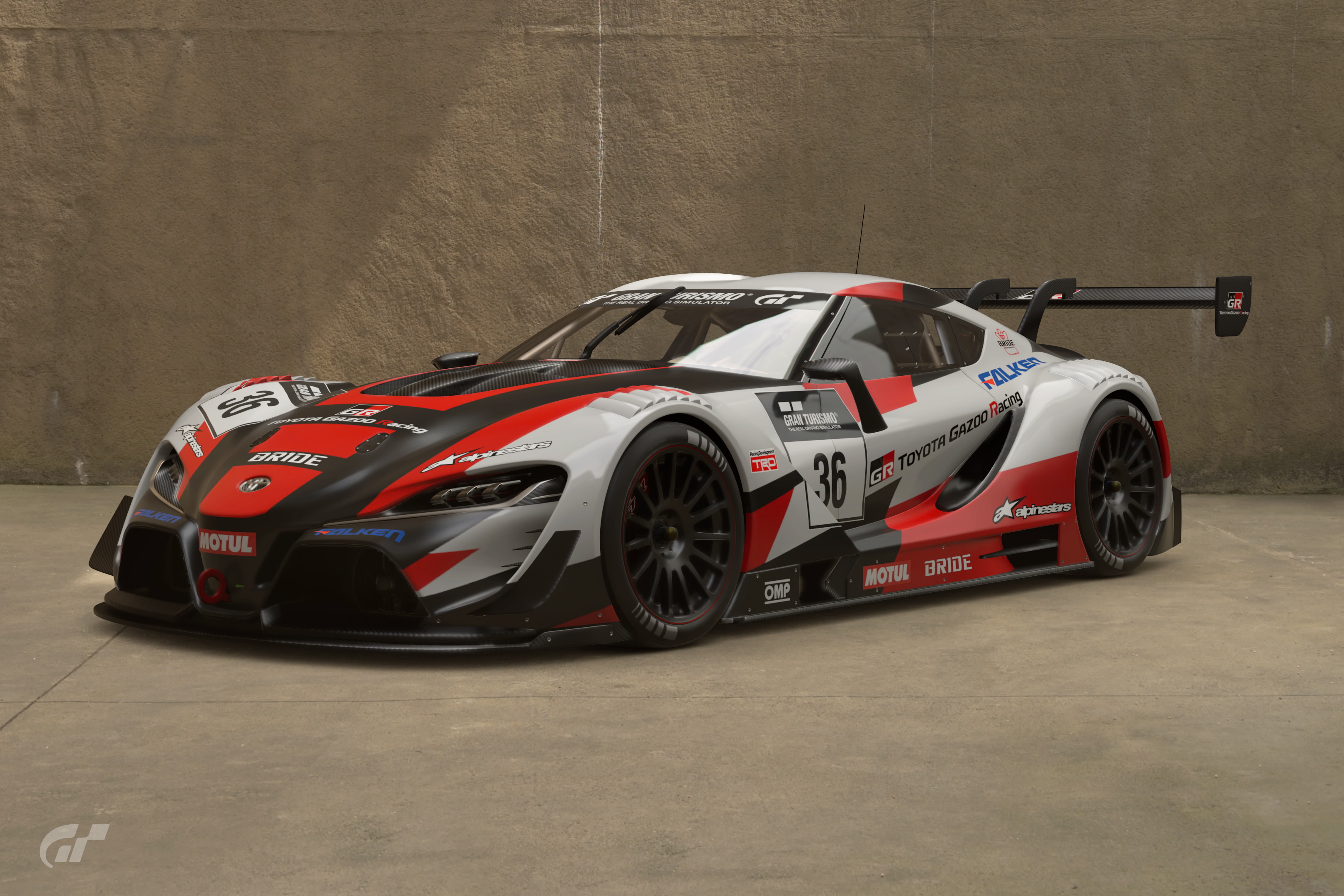 A pre-release screenshot of the FT-1 VGT (Gr.3), with more prominent "TOYOTA" logos in the front, doors, and rear (not shown)